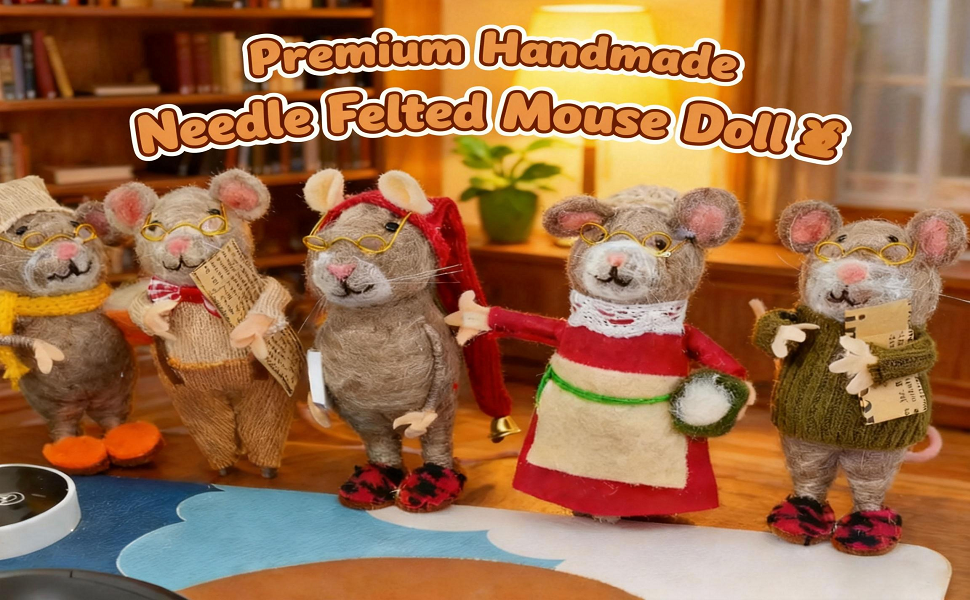 - Exquisite Design: The felt mouse sculptures feature delicate and adorable designs, including series like the Teacup Mouse, Mrs. Claus Mouse, and Professor Mouse.