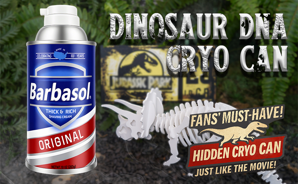 - Durable, Display-Ready Design: This dinosaur DNA canister is crafted from quality metal for durability and a premium feel. The test tubes and rack combine metal and plastic, keeping it lightweight yet sturdy. Perfect for display in collections or on your desk as an interactive piece, it blends seamlessly with other themed items. Note: This is a decorative prop, not a real shaving cream can. THE TOP BUTTON IS FOR DISPLAY ONLY-DO NOT PRESS FORCEFULLY OR USE AS A SPRAY CAN TO AVOID DAMAGE.