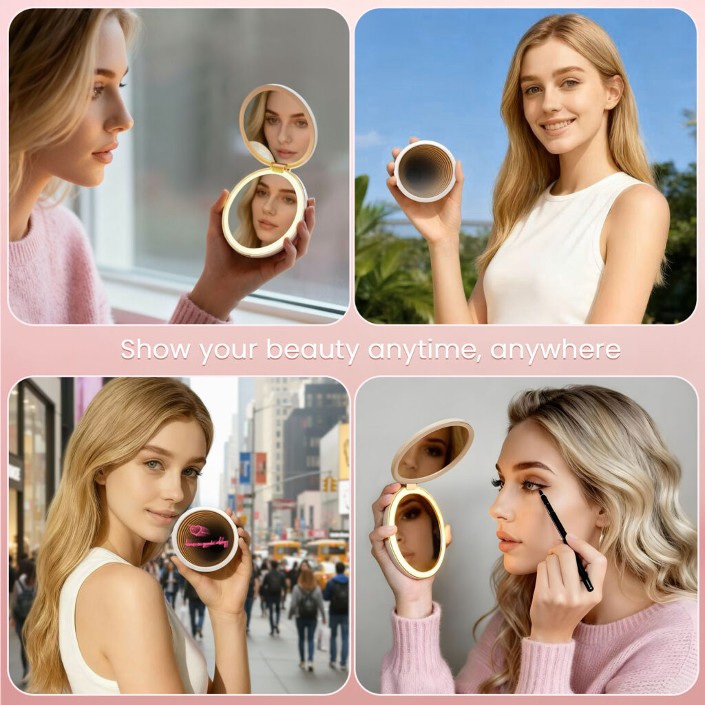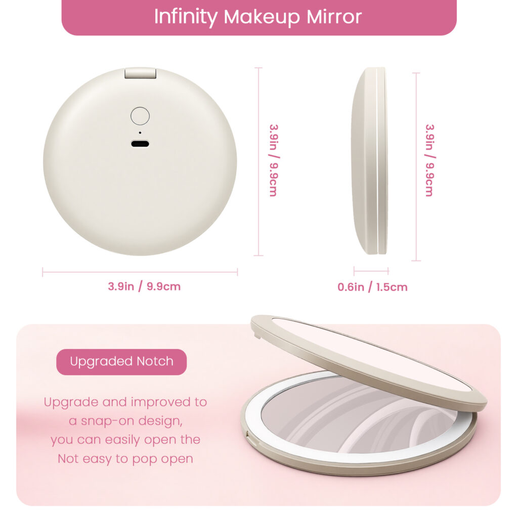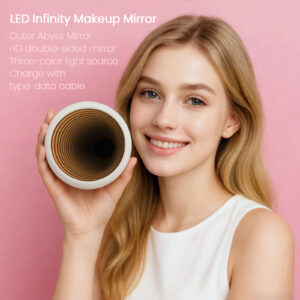 The World’s First Patented Infinity Makeup Mirror – We created something truly unique. Featuring a mesmerizing 3D infinity effect, this mirror offers a futuristic visual experience that feels like peering into endless space. With three precision lighting modes (Bright White, Natural Warm, Soft Cool), you can tailor your glow for flawless makeup application in any environment. Pro-grade adjustable LED illumination ensures perfect visibility, while the USB-C rechargeable design offers hours of cord-free use. Slim, lightweight, and ultra-portable, this mirror is the perfect beauty companion on the go. Ideal as a thoughtful gift for makeup lovers, travelers, and skincare enthusiasts.